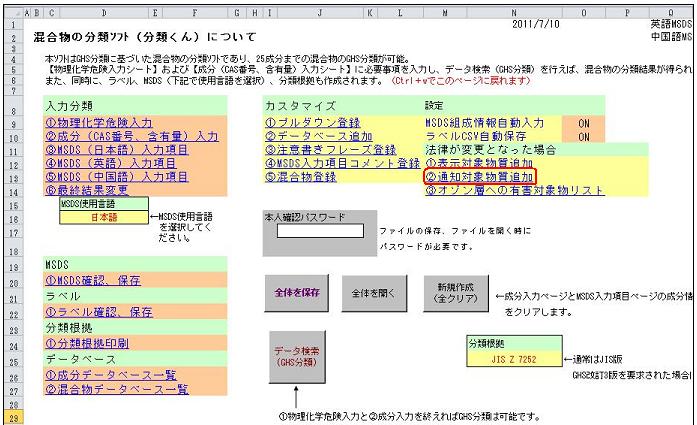 このソフトでは、安衛法の通知対象物質のデータを最初から保持しております。